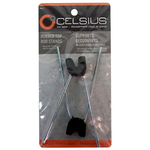 Celsius Rubber Top Lock On Ice Rod Stands fits a wide array of ice fishing rods and is the perfect solution for angling rod tips up above the hole in the ice. These stands have a heavy wire form with a rubber notch for rod connection. Celsius Rubber Top Lock On Ice Rod Stands is South Bend model IRS-1. These rod stands come 2 per package.