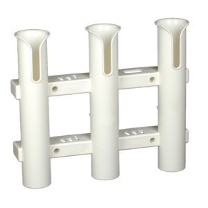 White Tournament 3 Rod Rack55110ATournament Rod Rack stores 3 rods tackle and tools.There is never enough rod storage at home or on the boat. Expensive fishing rods get damaged standing in a corner. Organize your prized rods with these economical and UV resistant rod racks. One piece molded polypropylene construction is tough and corrosion free. Features 3 rod holders 7 lure hanging holes one knife storage slot and one pliers slot. 11" tall and 12-½" wide. Stainless mounting screws included. Product : CE SMITH TOURNAMENT 3 ROD RACK WHITE Manufacturer : CE SMITH Manufacturer Part No : 55110A UPC : 768296007539
